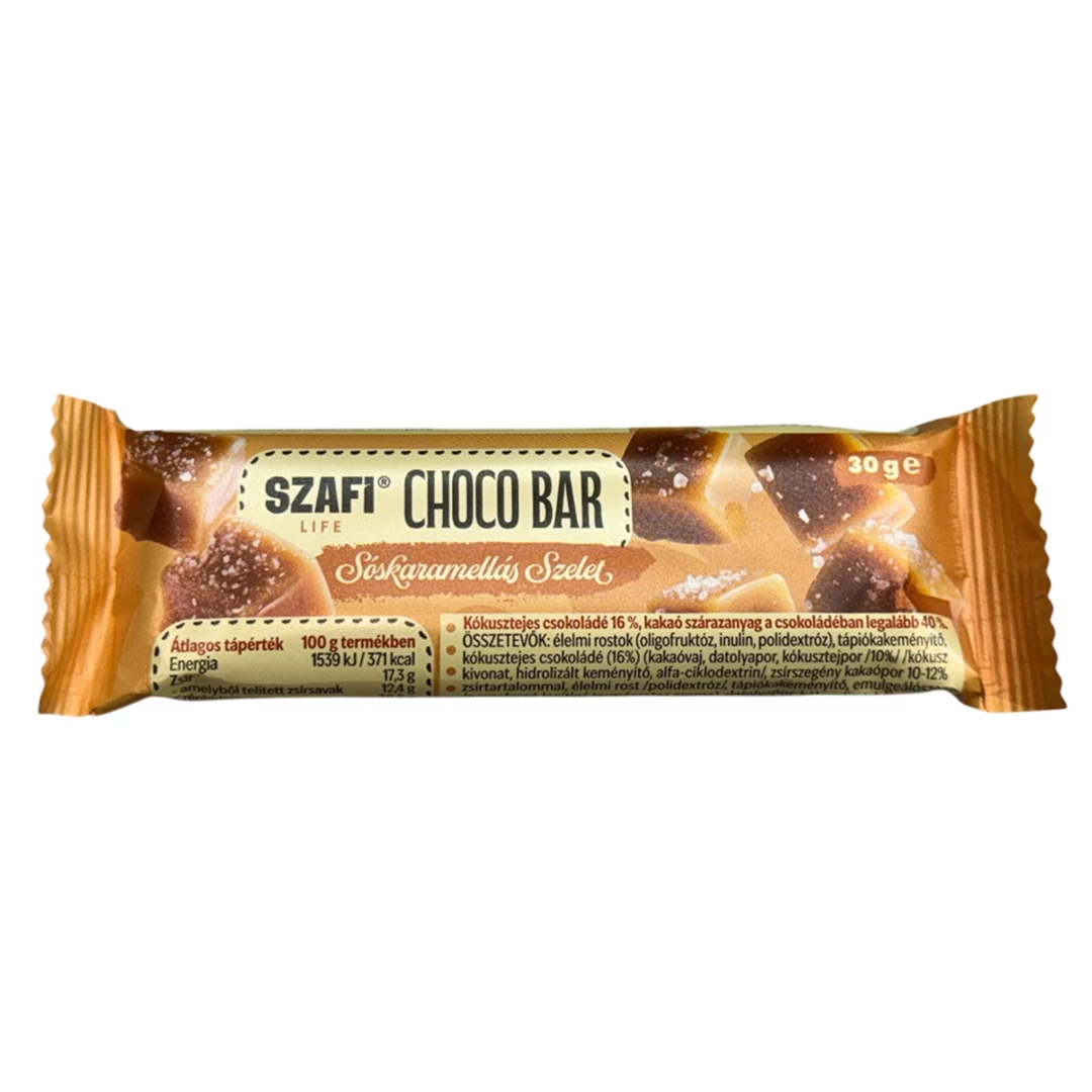 Sós-karamell ízű szelet kókusztejes csokoládéval (16%) mártva